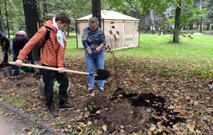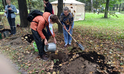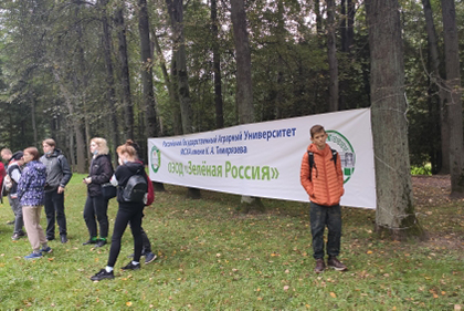 В этом году впервые площадкой для него стала Тимирязевская академия, которая открыла для этого свой великолепный исторический парк. После приветственных слов председателя Движения, Курченкова К.Ю., министров и руководителей, ректор главного сельскохозяйственного вуза страны В. И. Трухачев, под барабанную дробь посвятил в зелёные пионеры и повязал нашим ребятам галстуки добровольцев Зелёной России. После торжественной части участникам раздали инвентарь для субботника, и все дружно отправились на посадку молоденьких липок и уборку территории. А потом у наших ребят было много свободного времени для прогулки по историческому парку академии. Играл духовой оркестр. Полевая кухня от Академии МЧС угощала гостей вкусной кашей и чаем прямо на лужайке перед главным дворцом. Юные экскурсоводы вместе с педагогом дополнительного образования Волынкиной И.В. исследовали территорию, попробовали заглянуть в необычные окна-линзы дворца, которые хитрые профессора поставили в девятнадцатом веке, чтобы студенты не отвлекались на уличную публику, обнаружили грот, который строил ещё граф Разумовский в восемнадцатом веке. Наши юные экскурсоводы получили истинное удовольствие от общения с интересными людьми и от своего маленького вклада в хорошее дело.