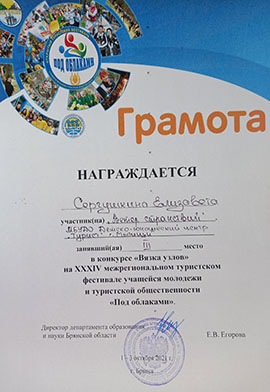 3 место в конкурсе «Вязка узлов» заняла Сергушкина Елизавета