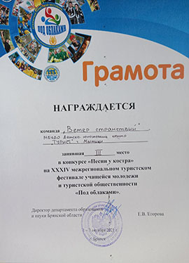 Команда «Ветер странствий» под руководством Кирияк Дмитрия Сергеевича и Мосалевой Ольги Сергеевны приняли участие и завоевали  награды