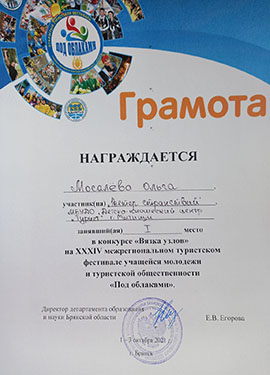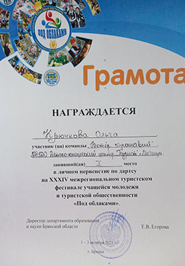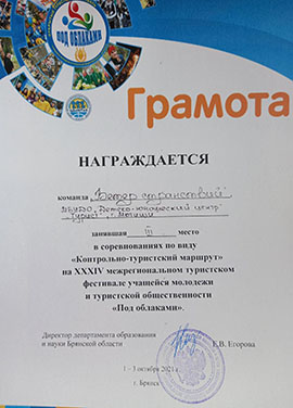 С 1-3 октября 2021года в Брянской области проходил XXXIV Межрегиональный туристский фестиваль учащейся молодежи и туристкой общественности «Под облаками». На фестиваль приехали команды молодежи и туристской общественности из Брянска и Брянской области, Подмосковья (Наро-Фоминск, Мытищи), Курска. Приехала команда из Луганской Народной Республики.
