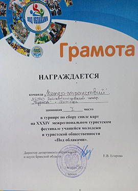 1 место в турнире по сбору спилс- карт, собирали Старцева Александра и Сергушкина Елизавета