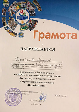 Номинацию «Лучший судья» получил Крайнов Андрей