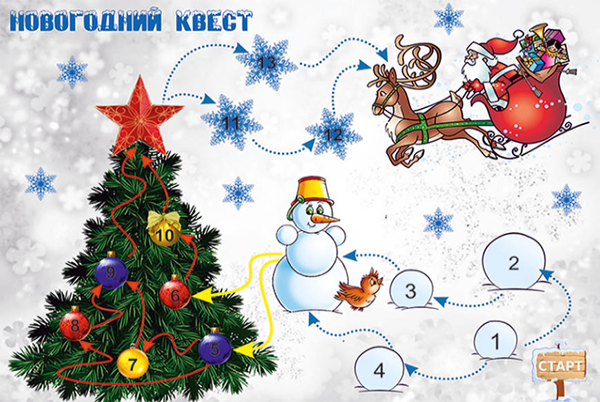 Как устроить настоящий праздник на Новый год детям на занятии? Устроить новогодний квест! Это очень увлекательная поисковая игра, где ребята будут решать поставленную в стартовом послании секретную миссию (например, спасти Деда Мороза, найти шапку деда Мороза), разгадывая одну за другой различные головоломки. А в финале, конечно, найдет свою заслуженную награду — подарки. По сценарию, участники находят под новогодней елкой письмо от снеговика, в котором говорится, что Дед Мороз решил поиграть с ребятами в прятки, спрятав волшебную красную шапку. Если её найти, то в том же месте появится новогодний подарок, а если дети не успеют это сделать в течение дня, то шапка исчезнет. Такой увлекательный квест прошел в объединениях «Логоритмика» педагога дополнительного образования Салтыковой А.А.