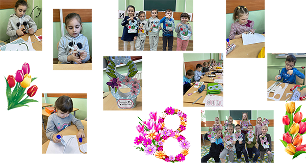 На мастер-классе ребята делали поделку к празднику 8 марта. Использовали готовые шаблоны для вырезания и наклевали элементы на поделку. С помощью таких занятий у детей развивается желание доставлять маме радость с помощью приятных поступков и действий, воспитывает любовь и уважение к своим близким и родным.