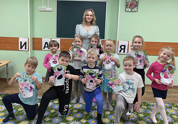 На мастер-классе ребята делали поделку к празднику 8 марта. Использовали готовые шаблоны для вырезания и наклевали элементы на поделку. С помощью таких занятий у детей развивается желание доставлять маме радость с помощью приятных поступков и действий, воспитывает любовь и уважение к своим близким и родным.